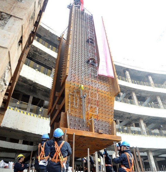 2014年1月4日下午,在建第一高樓武漢綠地鋼結(jié)構(gòu)工程舉行首根鋼巨柱吊裝儀式。據(jù)悉,這意味著世界第三高樓正式進(jìn)入主體結(jié)構(gòu)施工階段。湖北鋼結(jié)構(gòu)公司|http://www.bm021.cn在儀式現(xiàn)場設(shè)祭壇,綁活雞祭祀。鋼構(gòu)副總介紹,武漢綠地鋼結(jié)構(gòu)建筑高度為606米,是世界上第三高樓。 本次吊裝的巨柱構(gòu)件高7米,重達(dá)70噸,吊裝用的履帶吊自重300噸,吊裝能力90噸,預(yù)計整個項目用鋼量近8萬噸,屬超高層鋼結(jié)構(gòu)建筑物中的“重量級選手”。